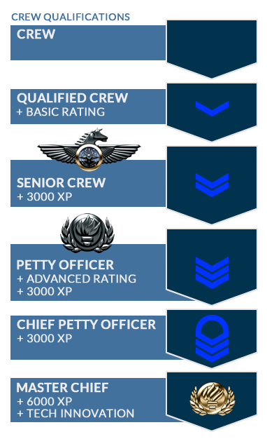 By accumulating mission experience crew can advance in rank to Senior Crew.